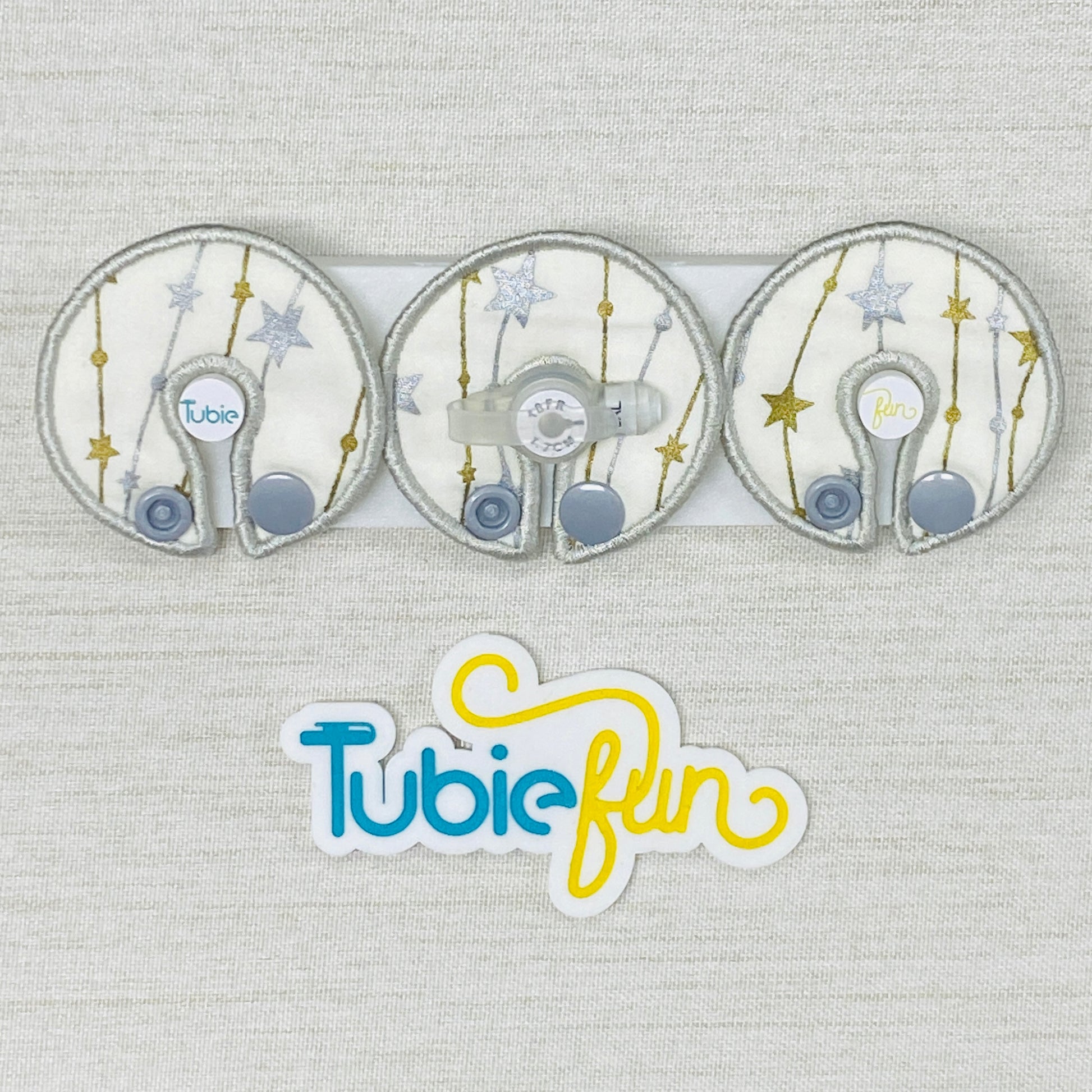 G-Tube Button Pad Cover - Gold and Silver Stars