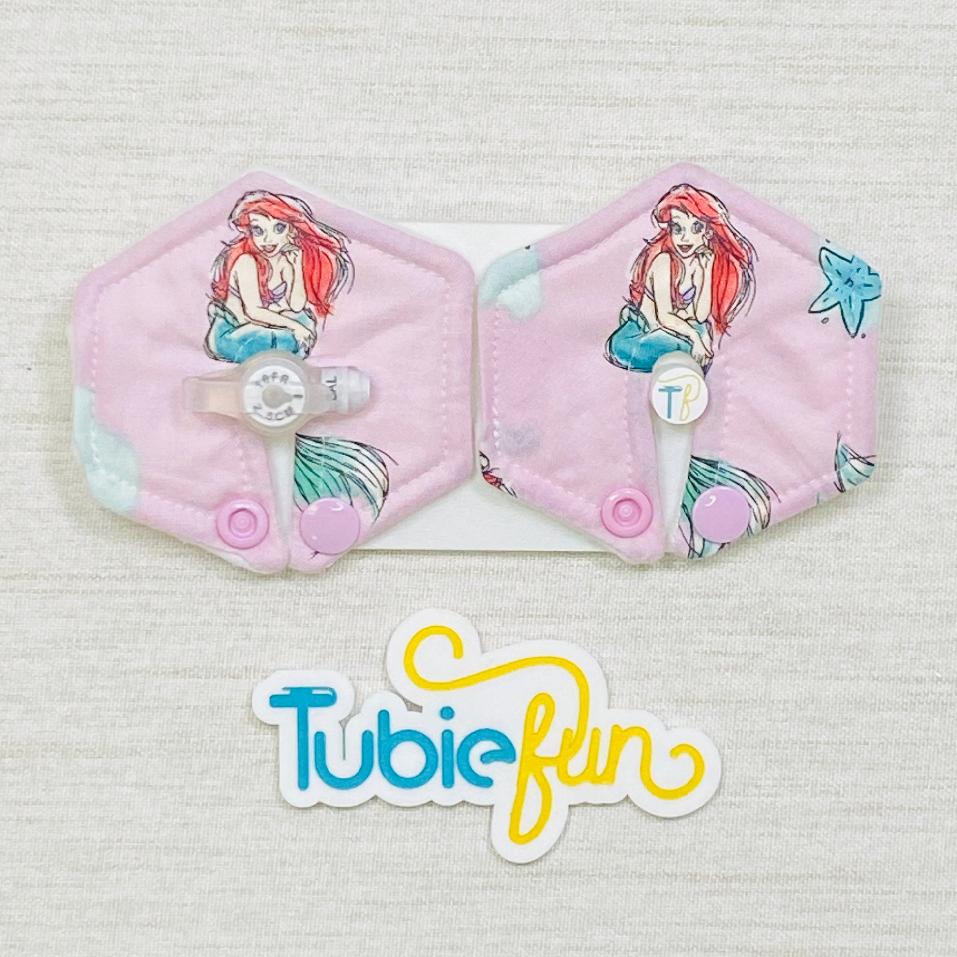 Hexagon G-Tube Button Pad Cover - Mermaid on Pink